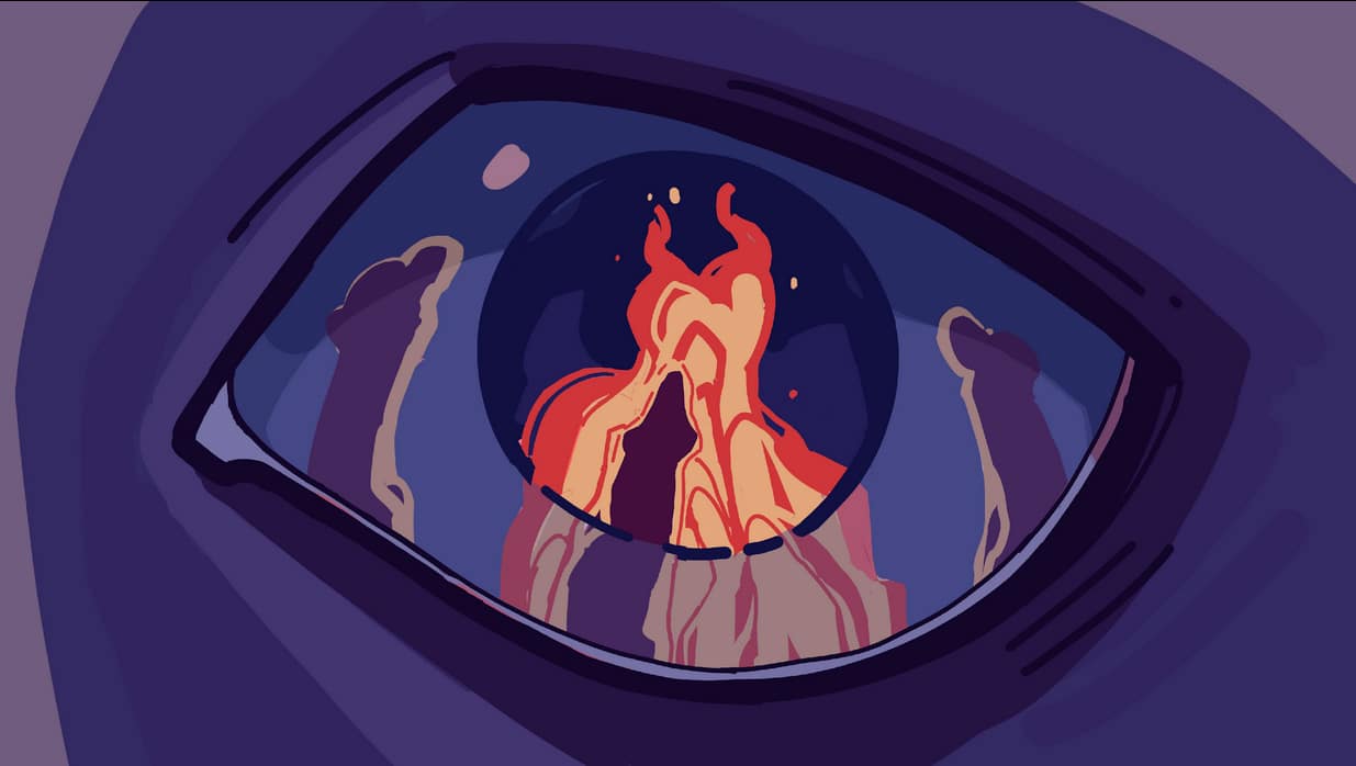 J’ai eu l’idée de ce court-métrage en visitant le bateau Cutty Sark qui est devenu un musée, à Londres. Plus particulièrement, je me suis inspirée de la légende de laquelle vient le nom du bateau et sa figure de proue : Tam o’shanter, un poème de Robert Burns. Je souhaitais représenter deux temporalités différentes : le bateau et son équipage du XIXe, d’une part, et l’univers écossais du XVe siècle, d’autre part. Visuellement je trouvais intéressant de partir de l’art écossais traditionnel. Ce dernier n’est pas très figuratif mais comprend beaucoup de symboles géométriques… Ce court métrage me permet également de me pencher sur la figure de la sorcière et de sa représentation…