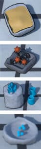 Morceau de sucre : L’utiliser appose un morceau de sucre sur le terrain. Attire l’attention des créatures. A son contact les entités le consomment et se multiplient instantanément.