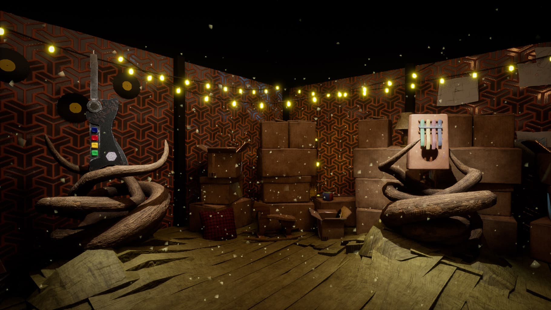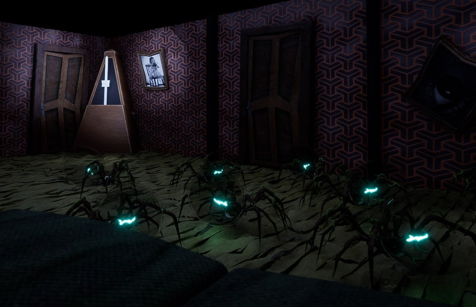 Deux salles, deux ambiances. Nous voulions que l’inquiétante étrangeté naisse progressivement. Nous avons donc créé une ambiance plus chaleureuse pour la phase d’apprentissage des mécaniques. Puis, l’ambiance devient plus froide et inquiétante et les Aralux font leur entrée pour menacer les joueurs… Une attention particulière a été portée au lighting pour créer ces deux ambiances tout au long de l’expérience.